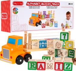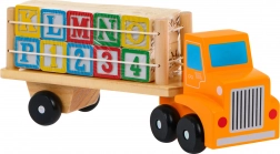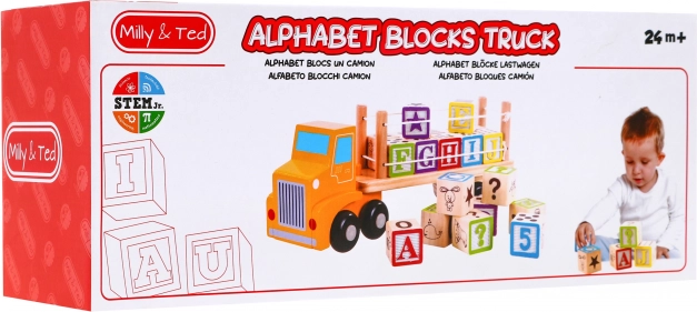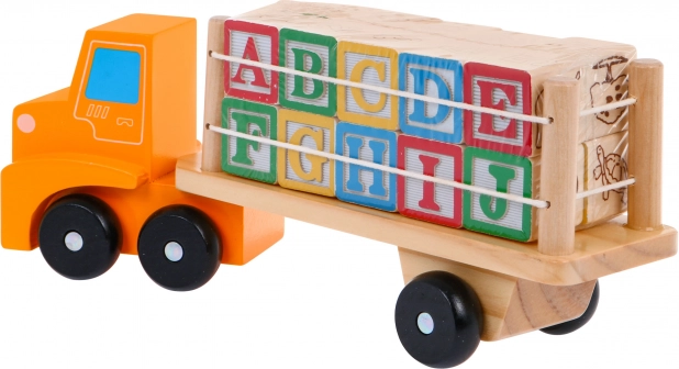 Descoperiți magia jocului cu camionul de lemn și cuburile alfabet. Acest set combină jocul cu învățarea și este ideal pentru copiii mici, care vor învăța alfabetul printr-o formă ludică.