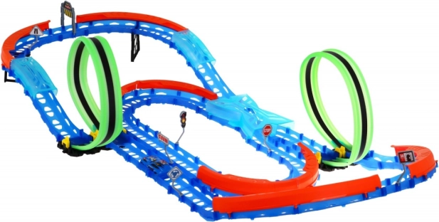 | | Pista mare cu două bucle este potrivită pentru copii de la 3 ani. Jucăria este alimentată cu o baterie de tip 1 x 3,7V - mașinuța (inclusă în pachet) și baterii de tip 2 x AAA - telecomanda (nu sunt incluse). Pista este fluorescentă, luminează în întuneric. Mașinuța are iluminare LED, cursa creează efecte uimitoare. Bucurați-vă de distracție. | |