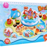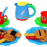 Sunt incluse farfurii, căni, tacâmuri, cutiuțe pentru dulciuri, ceainic și o fluierătoare – toate în culori vii. Setul este ambalat într-o cutie cadou colorată și este ideal ca dar. Jucăria este destinată copiilor de la 3 ani și are certificare CE. Alimentare: 3× AG3 (incluse în pachet).