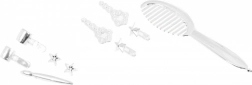 Setul conține tot ce este necesar pentru coafuri frumoase – de la pieptenele de bază până la elemente decorative. Construcția stabilă ușurează lucrul cu părul și asigură utilizare comodă acasă și în călătorii.