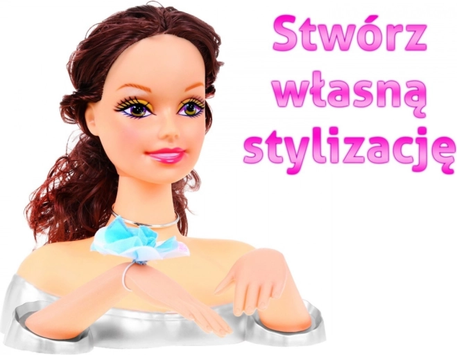 Descoperă distracția cu capul de păpușă pentru styling, cu păr lung castaniu. Copiii pot exersa pieptănarea, împletirea și decorarea părului folosind accesoriile incluse. Jocul susține creativitatea, motricitatea fină și imaginația.