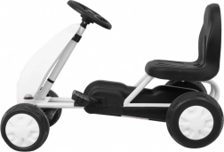 Kart ușor și rezistent pentru copii, cu transmisie pe lanț complet acoperită, roți din plastic cu bandă de rulare din cauciuc și scaun confortabil. Oferă stabilitate la rulare, încurajează mișcarea activă și este ideal pentru primele experiențe la „volan”.
