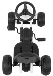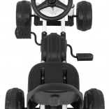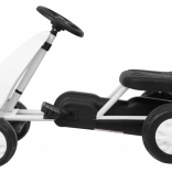 Acest kart compact cu pedale este conceput pentru cei mai mici copii. Datorită greutății reduse de 3,8 kg se manevrează ușor, iar transmisia pe lanț cu carcasă completă asigură siguranță și o tracțiune lină. Inelul de cauciuc al roților atenuează vibrațiile și crește aderența pe trotuar și în grădină.