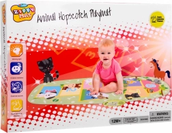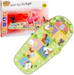 Covorașul interactiv tip „șotron” transformă orice cameră de copil într-un loc de joacă plin de distracție. Prin săritul pe câmpuri, copiii activează sunete reale de animale (cățel, văcuță, iepuraș, mielușel, căluț, rățușcă, pisicuță, păsărele) și pot alege dintre 8 fundaluri muzicale plăcute. Panoul mare, colorat, cu luminițe și butoane este intuitiv și invită la explorare.