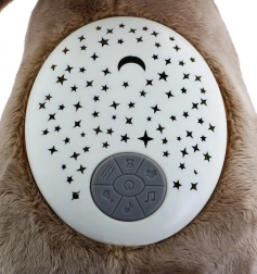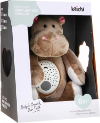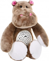 Hipopotamelul interactiv cu proiector în burtică proiectează pe tavan și pereți cerul înstelat în culorile roșu, albastru, verde și mov. Datorită melodiilor plăcute, luminilor difuze și suprafeței catifelate, copilul se simte în siguranță, se liniștește mai bine și adoarme mai repede. Partener ideal în camera copilului pentru ritualurile de seară.