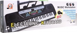 Conținutul pachetului include keyboardul, adaptorul, microfonul, suportul pentru partituri și manualul de utilizare. Dimensiunile keyboardului sunt aproximativ 70 cm x 23 cm x 7 cm.
