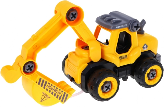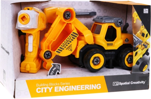 | | Jucărie creativă pentru micii ingineri. Setul este format din 28 de piese. Excavatorul se asamblează cu șurubelnița manuală inclusă sau cu bormașina electrică. Bormașina are 2 biți interschimbabili, care pot fi folosiți și ca șurubelniță manuală. Modulul bormașinii, introdus în excavator, îl pune în mișcare (mers înainte și înapoi). Jucăria educă și în același timp distrează. Instrucțiunile de asamblare, ușor de înțeles, vor ghida copilul pas cu pas către reușită. Jucăria are efecte sonore (sunet de mers și claxon - excavator, sunet de găurire - bormașină). Jucăria este destinată copiilor de la 3 ani în sus. Jucăria este alimentată cu baterii de tip 3 x AG - excavator (incluse în pachet), 2 x AA - modul de găurire (nu sunt incluse) și 2 x AA (nu sunt incluse) - bormașină. | |