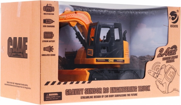 Descoperă o modalitate distractivă de a controla un utilaj de construcții – acest excavator pentru copii se controlează cu ajutorul unei brățări inteligente purtate pe mână. Prin gesturi simple la dreapta și la stânga controlezi direcția de mers, iar prin apăsarea butonului roșu controlezi cupa în sus și în jos. Jucăria redă sunete realiste de șantier, dezvoltă motricitatea fină, concentrarea și gândirea logică. Excavatorul funcționează la 2,4 GHz și oferă un corp rotativ pentru un joc și mai realist.