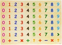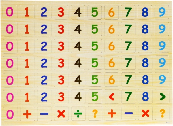 - Cutie din lemn cu tabla înmulțirii pe partea inferioară; carduri magnetice cu numere; carduri magnetice cu semne (+, −, ×, ÷, >, <, =, ?); forme magnetice colorate; discuri magnetice cu vremea, anotimpurile și zilele săptămânii; ceas magnetic; tablă magnetică cu două fețe; bețișoare de numărat din lemn colorate; ghid ilustrat; marker ștergător cu magnet