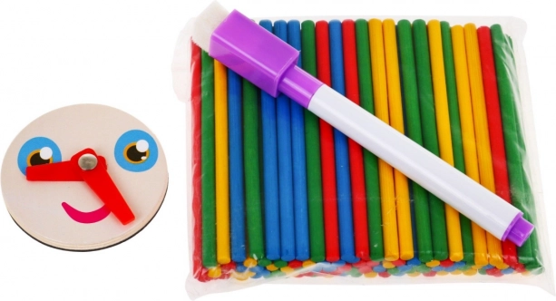 - Accesorii bogate: carduri cu numere și semne, magneți figurativi, bețișoare de numărat, marker ștergător.