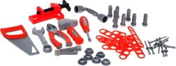 Uneltele ușoare din plastic, cu forme rotunjite, imită instrumentele reale, pentru ca cei mici să exerseze în siguranță prinderea, înșurubarea și bătutul cu ciocanul.