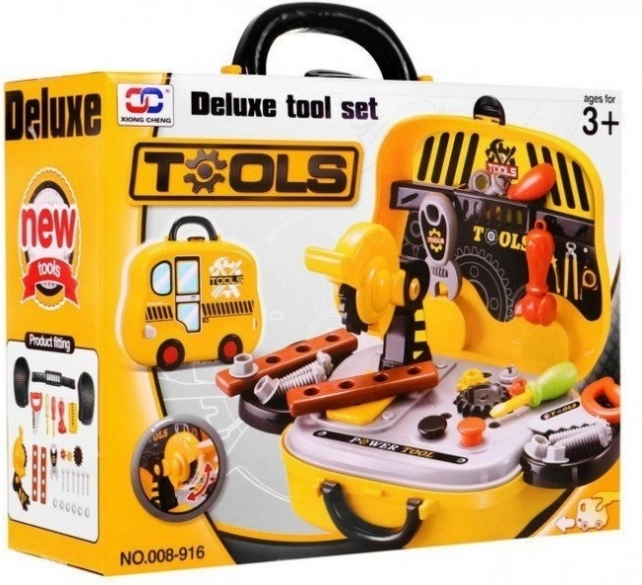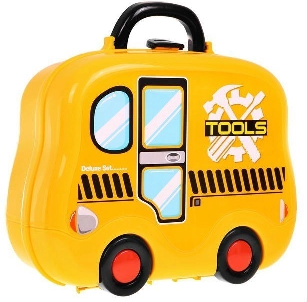 O valiză practică ce le ușurează copiilor depozitarea și transportul setului de unelte. Este ușoară și simplu de transportat, cu design de autobuz școlar.