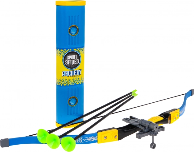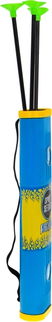 Setul include trei săgeți cu ventuze, care sunt sigure pentru utilizare atât în interior, cât și în exterior. Săgețile sunt depozitate într-un coș colorat, ușor de transportat.