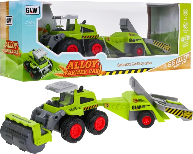 Set agricol realist pentru micii gospodari: tractor la scară 1:55 cu tăvălug de sol și remorcă pentru livezi. Oferă construcție metalică, anvelope din cauciuc, tracțiune pe puntea spate și tăvălugi rabatabili și rotativi pentru un joc și mai distractiv. Ideal pentru copii de la 3 ani.