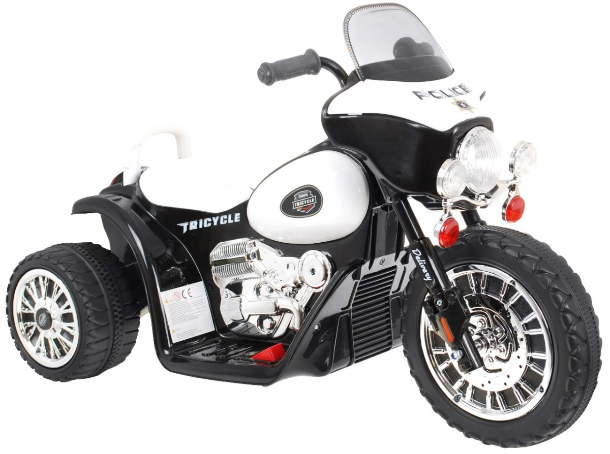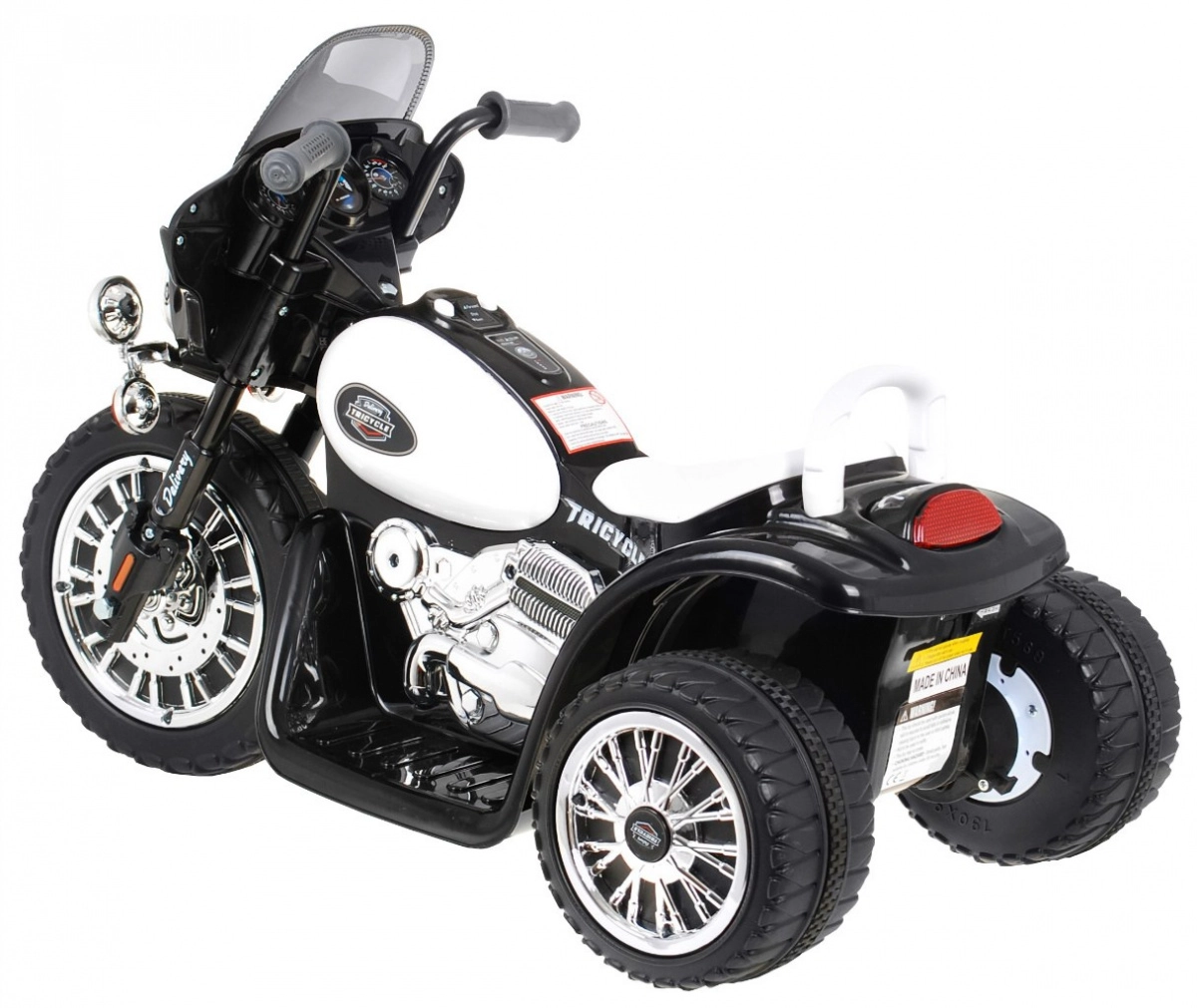 Oferiți-le copiilor bucuria de a conduce propriul chopper. Construcția cu trei roți crește stabilitatea și încrederea la primele plimbări, iar detaliile realiste, precum farurile LED și sunetele de claxon sau melodii, intensifică atmosfera unei motociclete reale. Controlul ușor înainte/înapoi este ideal pentru începători.