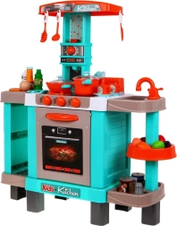 Setul include bucătăria cu chiuvetă, cuptor, rafturi și plită, împreună cu toate accesoriile precum veselă, ustensile, fructe, legume și altele. Acest set de bucătărie este alimentat de trei baterii AA (nu sunt incluse).
