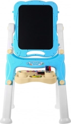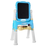 Partea superioară a feței negre pentru cretă oferă spațiu pentru desen clasic cu creta, împreună cu un sistem de prindere care previne ruperea cretei și menține mâinile micuților curate. Tabla se poate roti complet la 360 de grade, permițând o manipulare ușoară și varietate în creație.