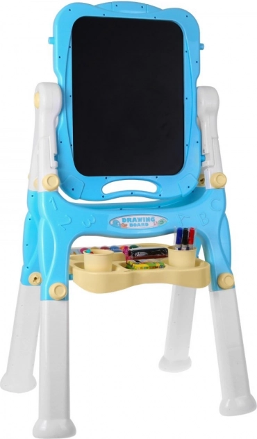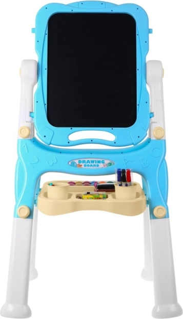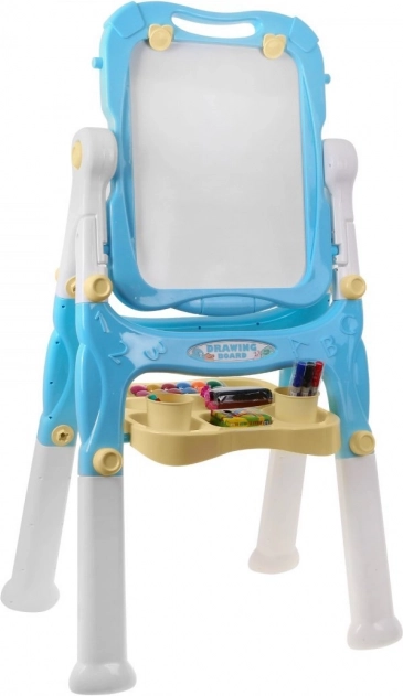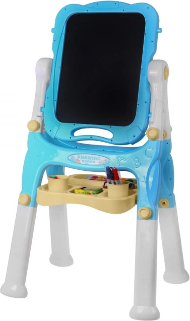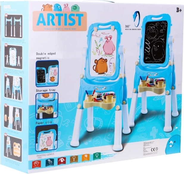 Tabla dublă pentru desen este proiectată pentru a susține o copilărie plină de creativitate. Pe partea albă, copiii pot scrie cu markerele incluse și pot șterge ușor totul cu buretele după utilizare. Funcția magnetică permite prinderea magneților colorați, iar clemele permit fixarea hârtiei pentru desen suplimentar.