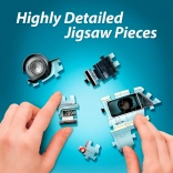 Puzzle-ul 3D original este realizat dintr-un material special rezistent, care combină un strat gros de polietilenă densă și hârtie de calitate.
