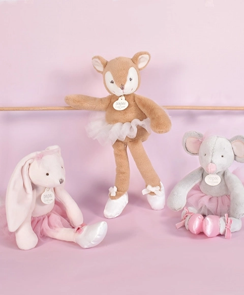 Acest șoricel de pluș foarte moale este îmbrăcat într-un costum de balerină cu fustă tutu din tulle și balerini din satin, împodobiți cu o fundă de catifea. Oferă copiilor un amestec de culori delicate și la modă, care atrage atât pe cei mici, cât și pe cei mai mari. Este ideal nu numai pentru joaca acasă, ci și pentru plimbări.