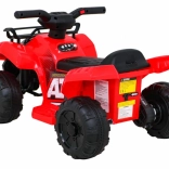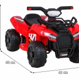ATV-ul electric pentru copii Quad Storm, în culoarea roșie, oferă o plimbare distractivă și sigură pentru cei mai mici șoferi. Datorită motorului de 25 W, bateriei de 6 V/4,5 Ah, luminilor LED și panoului audio cu USB/AUX, este ideal atât pentru utilizare în interior, cât și în exterior. Construcția ușoară, controlul simplu și roțile robuste garantează ore întregi de distracție activă.