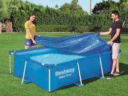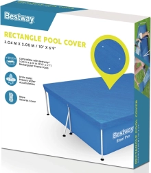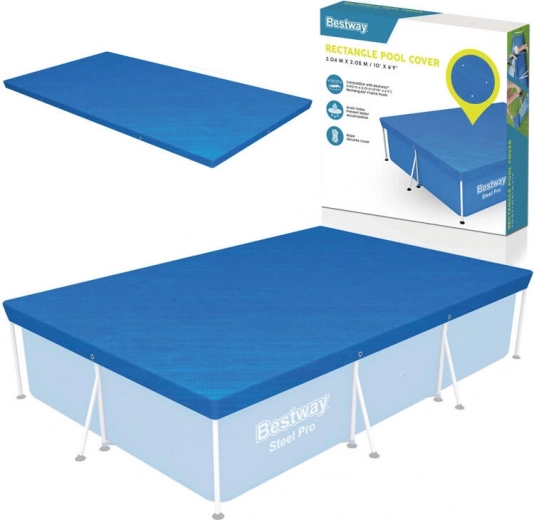 Husa este concepută pentru a proteja piscina dreptunghiulară cu cadru având dimensiunile de 300 x 201 cm. Orificiile specializate de drenaj previn acumularea apei pe husă. Datorită curelelor integrate husa se fixează simplu și sigur pe structura piscinei.