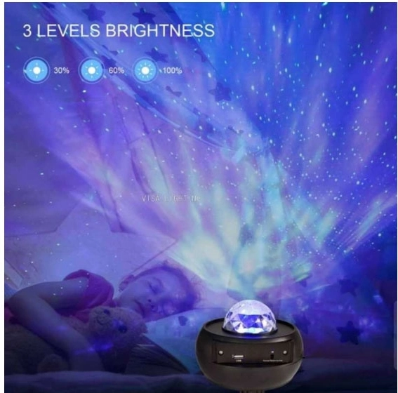 Acest proiector permite conectarea la smartphone prin Bluetooth, astfel încât puteți reda cântece de leagăn sau muzica preferată pentru copii. Se oprește automat după 4 ore, ceea ce este practic pentru utilizarea pe timp de noapte. Proiectorul este potrivit pentru copii de la 3 ani, însă funcțiile și atmosfera sa îi vor încânta și pe adulți.
