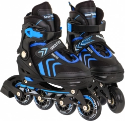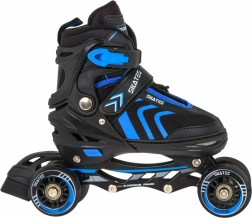 Set universal pentru micii patinatori care combină 4‑în‑1: patine inline, patine cu patru roți și patine de gheață, cu posibilitatea schimbării rapide a accesoriilor. Datorită reglajului pe cinci trepte al mărimii 29–33, căptușelii confortabile din spumă EVA cu material Velvet și construcției semi-rigide robuste, oferă confort, stabilitate și siguranță. Cadrul din aluminiu, rulmenții ABEC-7 și roțile PU 64 mm 85A asigură o deplasare lină și sigură, iar frânarea este asigurată de frâna de pe patina dreaptă.