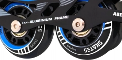Fixarea sigură este asigurată de închiderea triplă: șireturi, bandă cu scai și cataramă cu siguranță împotriva deschiderii accidentale. Cadrul din aluminiu al patinelor inline/cu patru roți sporește rigiditatea și durabilitatea, iar roțile PU 64×24 mm cu duritate 85A împreună cu rulmenții ABEC‑7 oferă o deplasare lină. Pentru distracția de iarnă, veți aprecia lamele din oțel inoxidabil ale patinelor de gheață și apărătorile practice pentru lame.