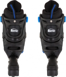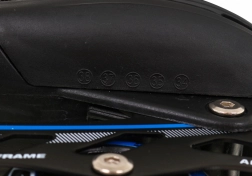 Șireturi, curea cu arici și cataramă cu blocare pentru fixarea fermă a piciorului. Frâna de pe patina dreaptă ajută la oprirea controlată.
