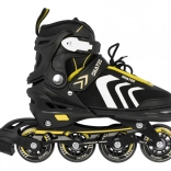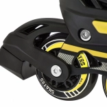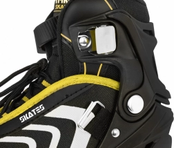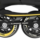 Bocancul are ventilație eficientă, membrană semipermeabilă și branț profilat cu spumă EVA moale, acoperit cu material catifelat Velvet. Închiderea triplă (șireturi, bandă cu velcro, cataramă cu siguranță) menține piciorul stabil. Cadrul din aluminiu cu roți PU 70×24 mm, duritate 85A și rulmenți ABEC‑7 oferă o rulare lină și rapidă; patina dreaptă este echipată cu frână.