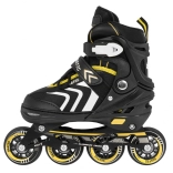 Setul universal pentru copii 4‑în‑1 combină patinele in-line, patinele cu roți tip quad și patinele de iarnă pe gheață într-un singur echipament. Datorită reglajului pe cinci trepte al mărimii 34–38, încălțămintei interioare confortabile cu spumă EVA moale și sistemului de închidere triplă sigur, este ideal pentru creșterea rapidă și mersul în siguranță. Cadrul din aluminiu, roțile PU 70×24 mm, rulmenții ABEC‑7 și lamele din oțel inoxidabil asigură o alunecare lină și durabilitate îndelungată.