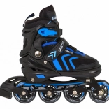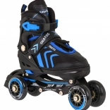 Setul universal 4 în 1 pentru copii combină patine inline, patine de gheață și varianta quad într-un singur produs. Datorită reglajului de mărime în 5 trepte (39–43), șasiului din aluminiu, roților din PU 72 mm / 85A și rulmenților ABEC-7, oferă o rulare lină și durabilitate ridicată. Confortul este asigurat de gheata semi-moale cu ventilație, branțul profilat din EVA și închiderea triplă pentru fixarea sigură a piciorului.
