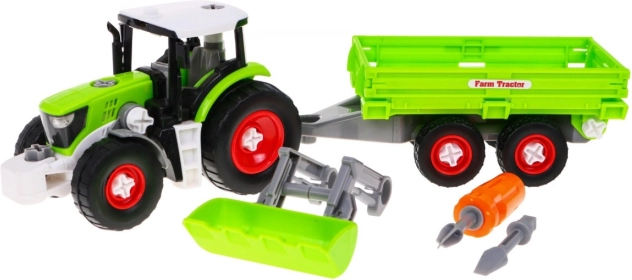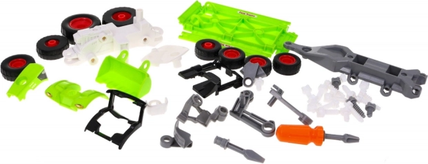 Acest tractor cu remorcă uimitor este destinat copiilor de la 3 ani în sus. Asamblarea și dezasamblarea tractoarelor cu ajutorul bormașinii cu două capete interschimbabile oferă distracție nesfârșită și sprijină motricitatea fină. Copiii pot juca rolul de mici mecanici, ceea ce le întărește creativitatea și capacitățile de învățare.