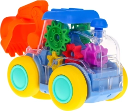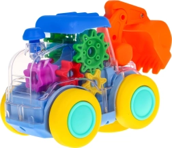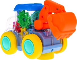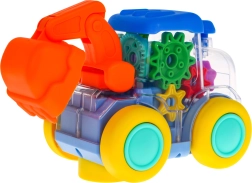 Această mașină de construcții colorată îmbină distracția cu învățarea. Caroseria transparentă dezvăluie angrenaje care se rotesc, prind viață în timpul mersului și îi fascinează pe micii constructori. Excavatorul este alimentat cu baterii, iar datorită unui mecanism inteligent se întoarce după impactul cu un obstacol și își continuă mersul. Atmosfera este completată de lumini și melodii, în timp ce cupa mobilă invită la noi scenarii de joc.