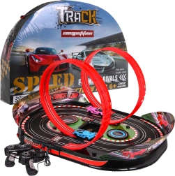 Setul de curse Speed Track aduce distracție plină de acțiune pentru copiii de la 6 ani în sus. Cu controlul manual prin manivelă, viteza este complet în mâinile voastre – cu cât rotiți mai repede, cu atât mașina zboară mai rapid pe pistă și abordează ambele bucle. Efectele luminoase și sonore interactive amplifică atmosfera unei curse reale, iar contorul de ture afișează clar cine este câștigătorul.