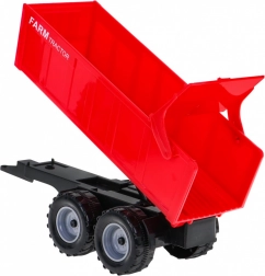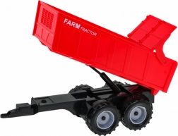 Remorca roșie cu basculare manuală permite transport realist al încărcăturii și descărcare distractivă.