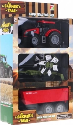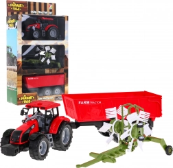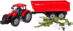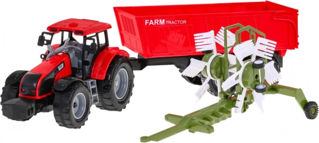 - Set în 3 piese: tractor, remorcă basculantă, greblă pentru fân
