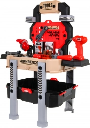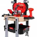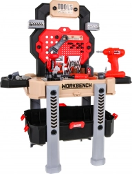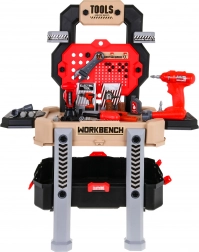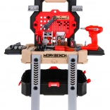 Acest banc de lucru realist pentru copii combină un stativ ordonat cu o geantă încăpătoare, pentru ca uneltele să fie mereu la îndemână și ușor de strâns. Datorită celor 78 de elemente și bormașinii/șurubelniței funcționale, copiii pot exersa înșurubarea, tăierea și asamblarea și pot învăța principiile de bază ale lucrului în atelier.