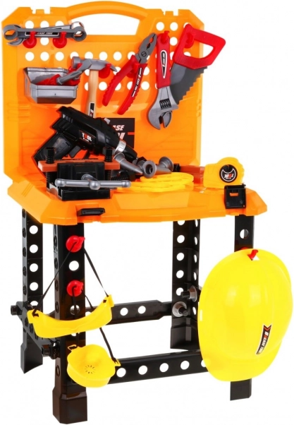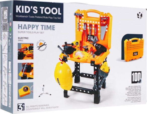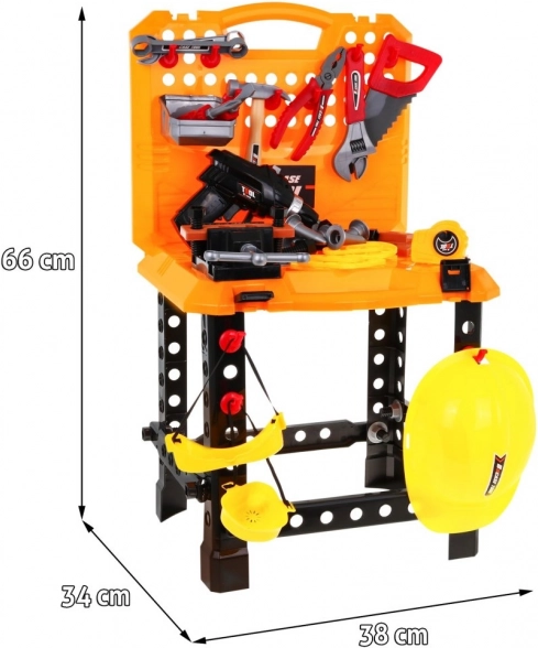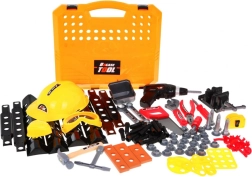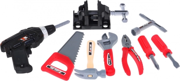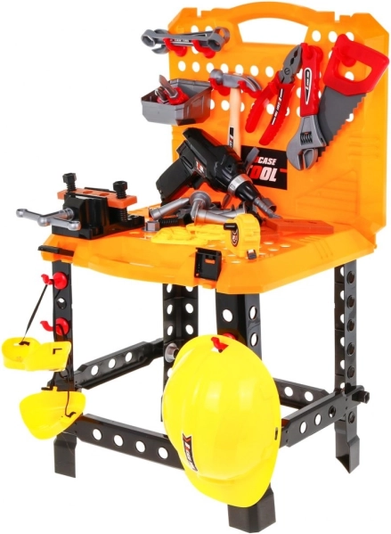 Include o gamă largă de unelte precum bormașină, ciocan, fierăstrău și altele, permițând copiilor să simuleze muncile meșteșugărești autentice.