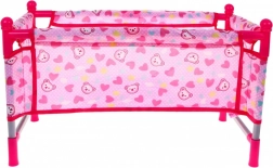 Pătuțul proiectat pentru păpuși este ideal pentru jocul de îngrijire a bebelușului. Este realizat din material roz cu motive de inimioare și ursuleți, care vor atrage orice copil.