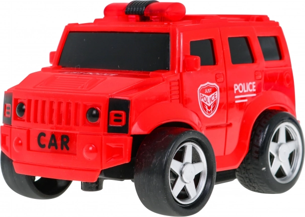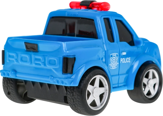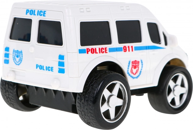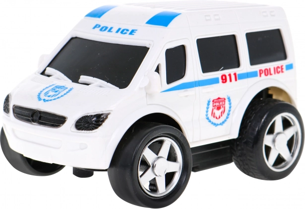 Setul include mașini de poliție albă, roșie și albastră, ideale pentru dezvoltarea jocului creativ al copiilor.