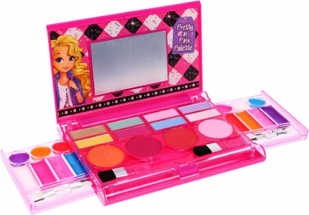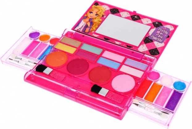 Această paletă roz adorabilă pentru machiaj, pentru copii de la 5 ani, include farduri colorate și rujuri, pensule practice și o oglindă într-o paletă pliabilă. Totul este păstrat într-o carcasă compactă, ideală pentru călătorii. Fabricată din materiale sigure și concepută pentru a susține creativitatea și motricitatea fină.