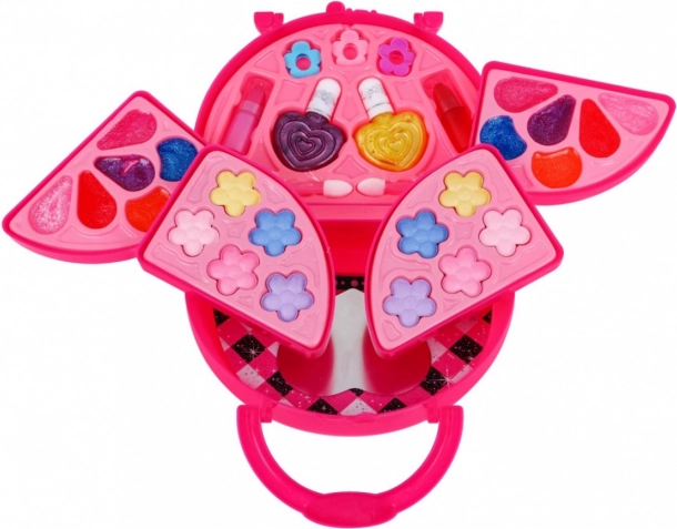La deschidere se dezvăluie machiajul bine organizat și o oglindă practică – ideal pentru utilizarea comodă și depozitarea tuturor accesoriilor.