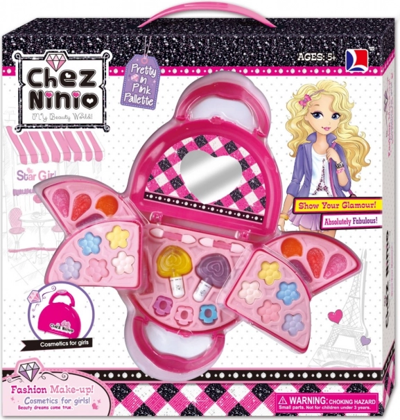 Aprindeți imaginația copiilor cu un set de machiaj portabil într-o geantă elegantă. Conține 10 farduri de ochi, 12 luciuri de buze, 2 rujuri, 2 lacuri de unghii, pensule, agrafe și oglindă. Ideal pentru copii de la 5 ani, pentru joc sigur și creativ oriunde și oricând.