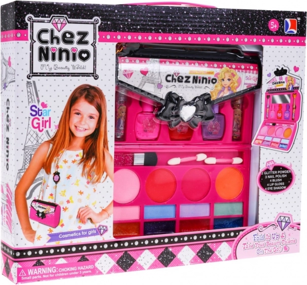 - 2 în 1 – set de machiaj pentru copii în poșetă și mini măsuță de machiaj