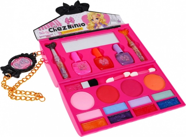 Setul de machiaj adorabil pentru copii, sub forma unei poșete roz, va bucura micile cochete de la 5 ani. Oferă 2 în 1 – poșetă și mini măsuță de machiaj cu lacuri de unghii, farduri de ochi, farduri de obraz și luciuri, oglindă și lanț de umăr. Fabricat din materiale sigure și ideal pentru călătorii și joc creativ.