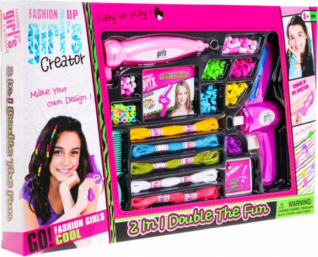 Acest set creativ bogat le permite copiilor să creeze ușor și distractiv accesorii pentru păr cu mărgele, precum și brățări, coliere, pandantive și seturi întregi de bijuterii. Instrumentele intuitive pentru împletire și înșirare grăbesc lucrul și inspiră idei noi. Datorită paletei variate de forme și culori, apar de fiecare dată combinații unice.