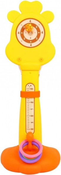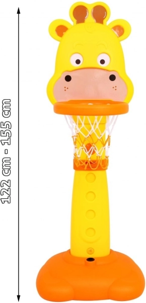 Setul drăgălaș în formă de girafă îi motivează pe copii la mișcare, dezvoltă coordonarea ochi‑mână și susține obiceiuri sănătoase. Înălțimea coșului se ajustează ușor în funcție de vârsta și abilitățile copilului (125–155 cm), astfel încât setul „crește” odată cu el. Construcția din plastic robust și baza mare asigură stabilitate în timpul jocului.