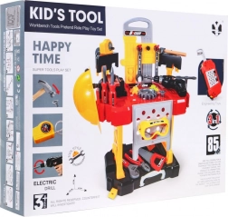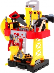 Include o dotare bogată: mașină de găurit/înșurubat cu acumulator, ciocan, menghină, fierăstrău, clește, chei imbus și fixe, șurubelnițe, șuruburi, piulițe, roți dințate, ruletă și elemente de lucru filetate pentru înșurubare și montaj fără sfârșit. Datorită organizării inteligente a uneltelor, copiii își exersează ordinea, răbdarea și coordonarea mână–ochi.